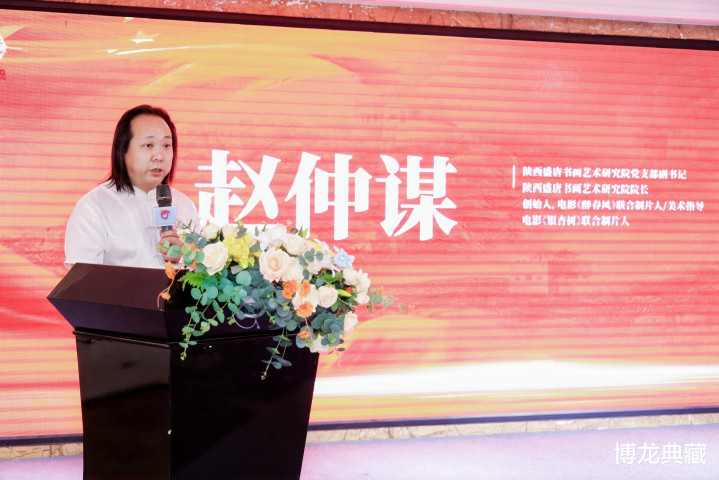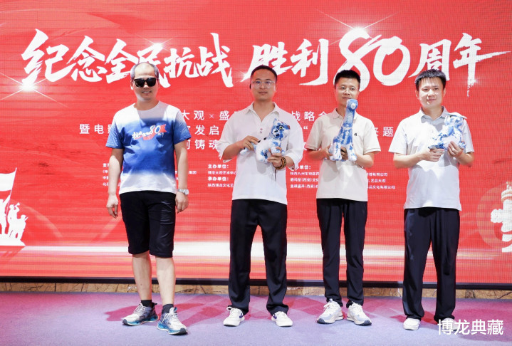 8月28日下午,由博龙大观艺术中心、陕西盛唐书画艺术研究院主办的“纪念全民抗战胜利80周年——博龙大观×盛唐书画院战略合作暨电影《醉春风》宣发启动·春风行动“我为电影来题名”与“山河铸魂·烽火长明”文物特展”活动在博龙大观艺术中心举行。本次活动得到鹿鸣堂(西安)文化产业有限公司、陕西九州生物医药科技集团以及陕西千岛茗香健康管理有限公司的鼎力协办支持,吸引企业代表、文化艺术家及媒体嘉宾等百余人参加。